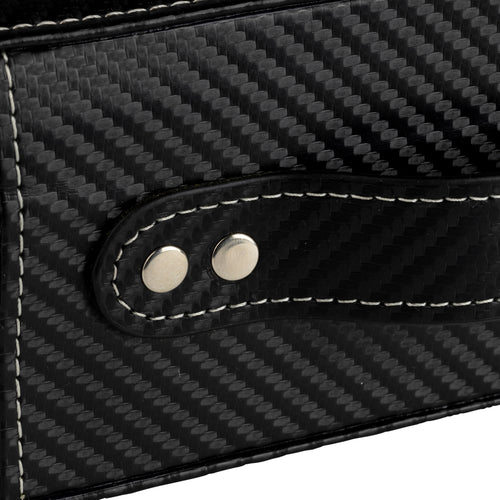 Carbon fibre watch zip-up case that holds 10 watches with carry handle.
